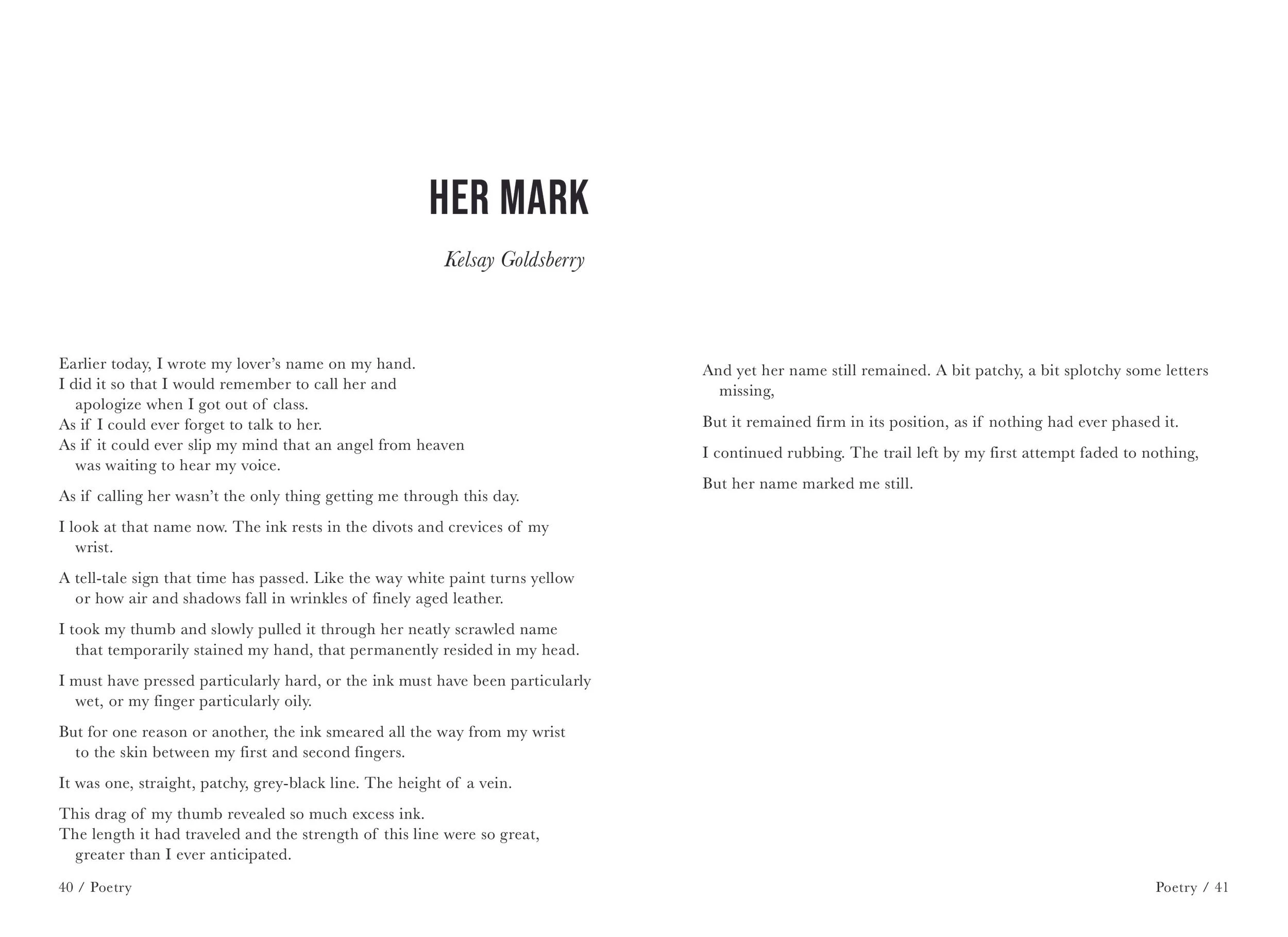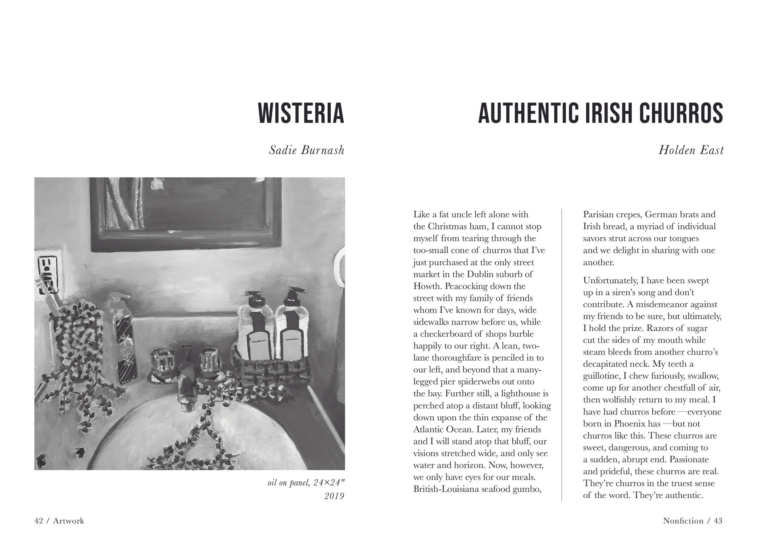 Cover art and a selection of spreads from the 2019 edition of the annual Murray State student publication, featuring poetry and prose by students, and photography of student art.